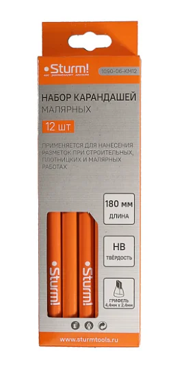 Набор карандашей малярных Sturm! 1090-06-KM12 служит для нанесения графических разметок. Применяется при строительных, плотницких и малярных работах.
