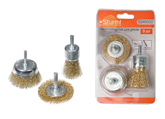 Используется для зачистки деревянных и металлических поверхностей с помощью дрели в труднодоступных местах. Рабочая часть состоит из стальной гофрированной проволоки.Хвостовик 6 мм для закрепления в патроне любой дрели. Состав набора : радиальная 50 мм, чашеообразная, 50 мм, кистеообразная 25 мм. Диаметр проволоки -0,3 мм, упаковка-блистер