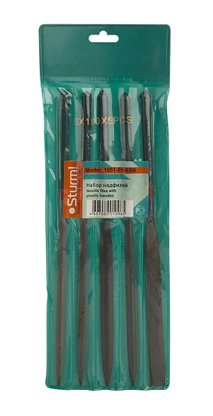 Набор надфилей Sturm! 1051-01-SSN, 5 шт. (треугольный, двояковыпуклый, плоский, квадратный, круглый), длина 100мм. Алмазное напыление удобная обрезиненная рукоятка c хорошим сцеплением, двойная перекрестная насечка не оставляет бороздок на поверхности.