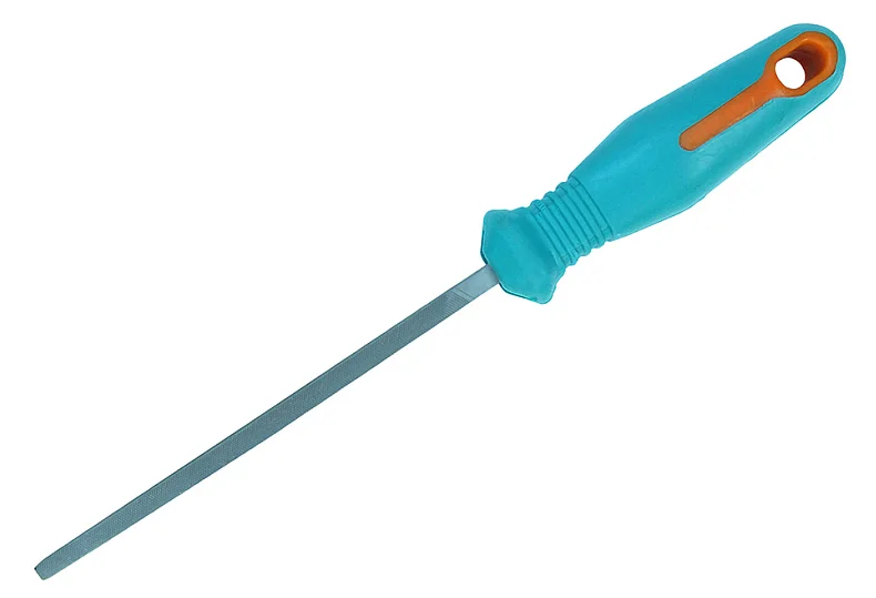 Напильники наиболее распространенными и популярными инструментами для слесарной обработки металлов. Рабочая часть выполнена из качественной инструментальной стали марки Т12 и имеет двойную перекрестную насечку. Рукоятка выполнена из пластика и имеет специальное противоскользящее покрытие инструмент по обработке твердых металлов, таких как сталь и чугун.