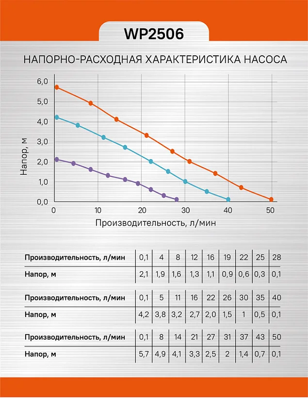 Лицевая панель насоса выполнена из лазероактивного пластика, для получения несмываемой водостойкой граверовки с техническими данными.