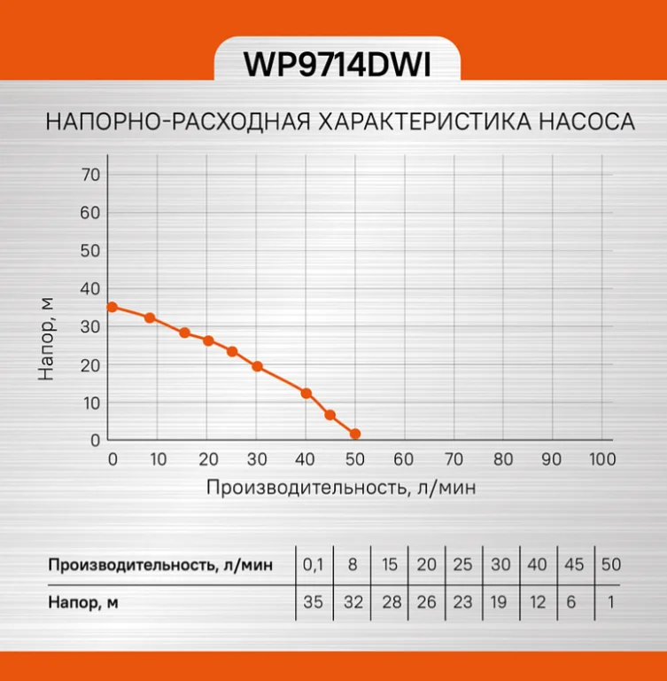Корпус насоса изготовлен из нержавеющей стали и устойчив к воздействию водной среды.