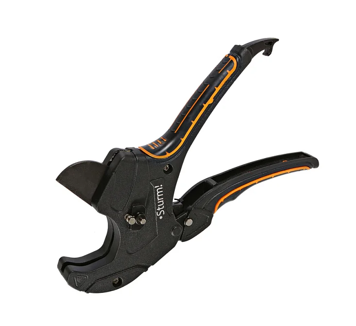 Лезвие из инструментальной стали SK5 в сочетании с храповым механизмом облегчают процесс реза труб.