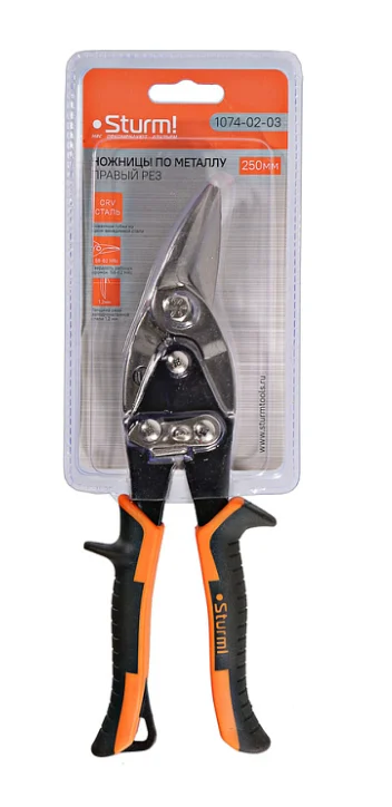 1074-02-03 Ножницы по металлу, левый рез, 2-Х РЫЧАЖНАЯ СИСТЕМА ДЛЯ ОБЛЕГЧЕНИЯ РЕЗА, Sturm!