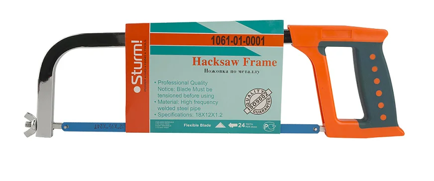 Поверхность рамы ножовки покрыта дополнительным слоем специальной фаски, который эффективно защищает её от внешнего воздействия и коррозииПродуманная форма рукоятки обеспечивает удобный и надёжный захват, тем самым повышая эффективность инструмента в работе