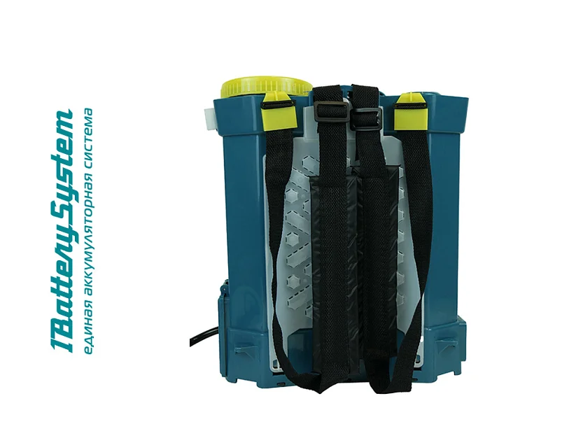 Опрыскиватель в целях экономии поставляется без аккумулятора и зарядного устройства. Вы можете использовать один аккумулятор данной системы для нескольких инструментов или использовать аккумулятор от шуруповерта с логотипом 1BatterySystem.
