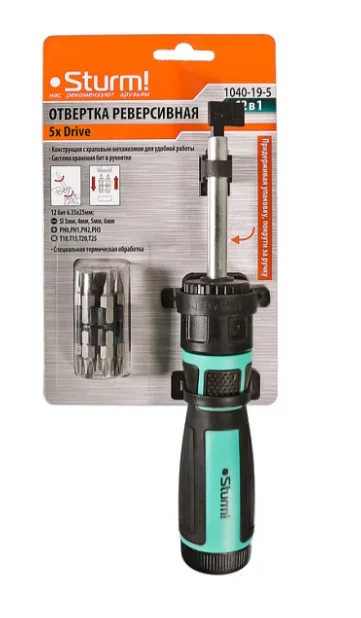 Отвертка реверсивная, 5x Drive, CrV Sturm! 1040-19-5