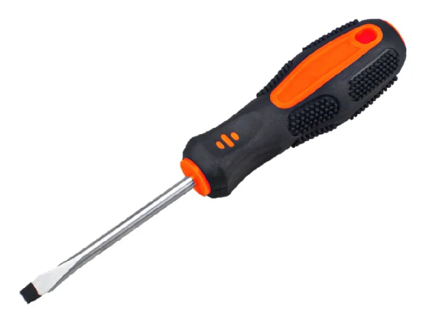 Эргономичная рукоятка с мягким резиновым покрытием, препятствующим проскальзыванию отвертки в руке. Рабочая часть отвертки выполнена из высоколегированной хромованадиевой инструментальной стали и имеет высокую твердость и прочность, что определяет длительный срок службы инструмента.