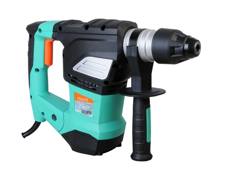 Sturm RH2518 – производительный универсальный перфоратор бытового назначения. Имеет вертикальную компоновку, которая предполагает установку мощных двигателя и механической части при сохранении умеренных габаритных размеров корпуса. Инструмент обладает отличной развесовкой, за счет чего достигается его уверенный контроль, а также тщательно проработанной эргономикой. Дополнительный комфорт обеспечивает специальный антивибрационный демпфер, значительно снижающий уровень вибрации при работе. Модель оснащена мощным 1850 Вт электромотором и ударным механизмом, развивающим высокую энергию удара в 7 Дж – это позволяет быстро и эффективно бурить сквозные отверстия диаметром до 36 мм в материалах различной твердости, включая камень и различные марки бетона. При необходимости, возможно использование полых коронок больших диаметров (бетон – 68 мм / кирпич – 90 мм). Для обеспечения высокого ресурса инструмента особое внимание уделено наиболее нагруженным элементам конструкции: электромотор покрыт несколькими изоляционными слоями термостойкого лака с дополнительным бронированием армирующей нитью, защищающей от воздействия абразивных частиц, шестерни редуктора изготовлены из высококачественной стали и подвержены закалке, усилен ударный механизм, подшипники и пусковая кнопка имеют пылезащиту. Корпус редуктора и ствол ударной части выполнены из литого алюминия, за счет чего обеспечивается лучший теплоотвод от элементов ударного механизма, во избежание перегрева при непрерывной эксплуатации. За безопасность использования отвечает предохранительная кулачковая муфта, исключающая опасность проворачивания инструмента в руках при заклинивании оснастки в материале. Перфоратор Sturm RH2518 имеет три режима работы: сверление, сверление с ударом, либо режим удара. Предусмотрена функция установки долота в нужном угловом положении. Для комфортной эксплуатации инструмента в холодное время года сетевой кабель перфоратора имеет резиновую изоляцию, что позволяет сохранить его гибкость и эластичность в условиях низких температур. Удобство хранения и транспортировки обеспечивает штатный пластмассовый кейс.