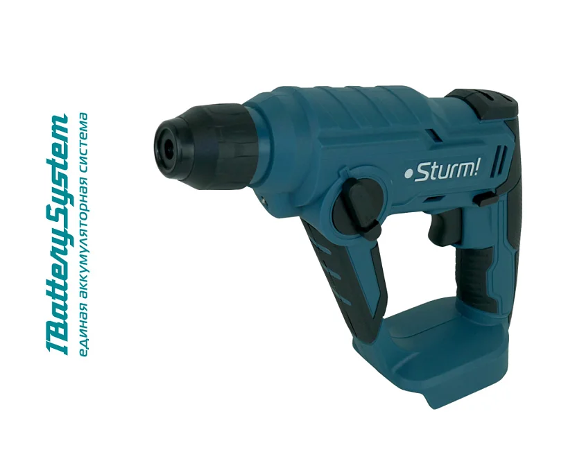 1BatterySystem - универсальная аккумуляторная система. Подходит ко всей линейке аккумуляторного инструмента Sturm!Светодиодная подсветка позволит работать в условиях недостаточной освещенностиОдноручный перфоратор - благодаря небольшому весу и компактному размеру перфоратором удобно пользоваться одной рукой
