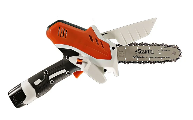 Аккумуляторная цепная пила Sturm! CSC1804 прекрасно справится с обрезкой веток деревьев и простыми столярными работами.