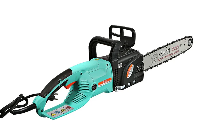 Sturm CC9922 — производительная электрическая цепная пила бытового назначения. Главная особенность модели, отличающая ее от большинства цепных пил — наличие безмасляной пильной гарнитуры. Шина инструмента изготовлена из специальной износостойкой стали и благодаря наличию воздухоподводящих каналов имеет развитую систему систему охлаждения. Это гарантирует немало преимуществ: пила не нуждается в заправке маслом и, как следствие, в постоянном контроле его уровня, исключается необходимость регулярной прочистки маслоподающего канала от опилок, инструмент не оставляет масляные пятна при транспортировке или хранении. Пила максимально проста в обслуживании и всегда готова к работе, вне зависимости от температурных условий и наличия специального масла для смазки пильной гарнитуры! Инструмент оснащен электромотором мощностью 2,2 кВт и развивает скорость движения цепи в 360 об/мин — это способствует как высокой скорости единичного пропила, так и общей производительности при значительных объемах работы. Для обеспечения высокого ресурса особое внимание уделено наиболее нагруженным элементам конструкции: электромотор покрыт несколькими изоляционными слоями термостойкого лака и имеет дополнительное бронирование армирующей нитью, вал приводной звездочки установлен на шарикоподшипниках, шестерни редуктора выполнены из высоколегированной стали. Кроме того, применение шестерен с конической формой зуба позволило снизить уровень шума при работе. Для удобства пользователя на модели Sturm CC9922 установлен автоматический механизм регулировки цепи, обеспечивающий ее оптимальное натяжение в процессе работы. За счет предусмотренной функции быстрого доступа к щеткам, их замена осуществляется без разбора элементов корпуса. Безопасность использования гарантируют механический тормоз экстренной блокировки цепи и защита от непреднамеренного пуска.