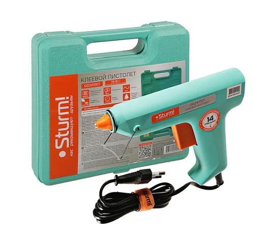 Клеевой пистолет GG2470C1 со сменном носиком и кейсом в комплекте отличается универсальностью применения.