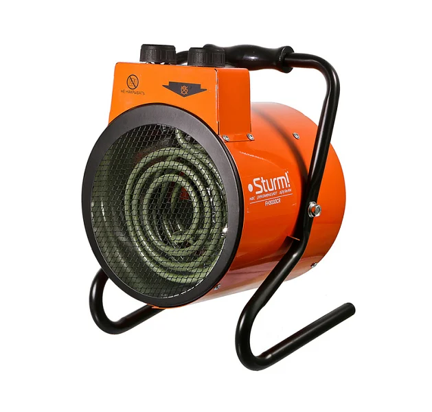 Sturm! FH3033CR — электрическая тепловая пушка мощностью 3 кВт и с производительностью воздушного потока 185 м3/ч. Предназначена для временного или постоянного обогрева жилых, производственных и вспомогательных помещений площадью до 40 м2. Модель выполнена в прочном металлическом корпусе, устойчивом к возможным механическим повреждениям и имеет широкую опорную подошву, предотвращающую случайное опрокидывание. Небольшие габариты и вес прибора способствуют удобству его хранения. Тепловая пушка Sturm! FH3033CR оснащена классическим нагревательным элементом спирального типа – он обеспечивает не только быстрый прогрев помещения, но и благодаря своей форме в виде спирали, устойчив к попаданию пыли, и частиц абразива. Наличие встроенного вентилятора позволяет значительно ускорить циркуляцию нагретого воздуха в помещении. Управление прибором осуществляется посредством пары регуляторов, расположенных на верхней панели. С помощью первого регулятора пользователь выбирает один из двух предусмотренных режимов работы: вентиляция без нагрева / горячий обдув. Вторым регулятором производится управление термостатом. Безопасность работы устройства гарантирует защита от перегрева. Для удобства перемещения с места на место, модель оснащена эргономичной рукоятью.