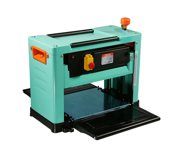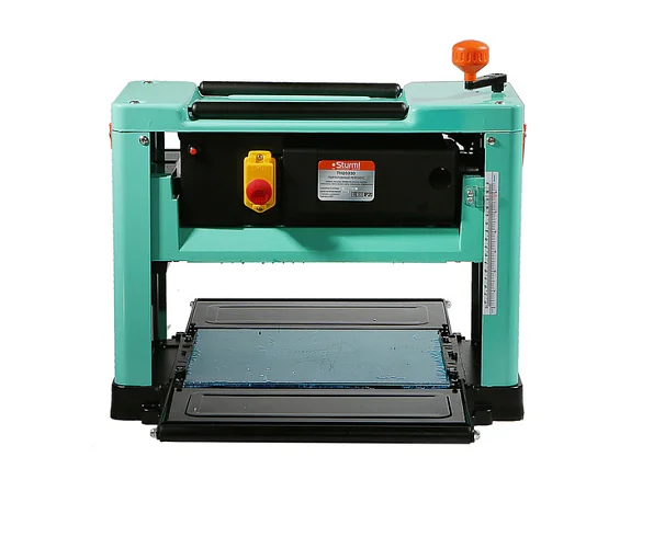 Sturm TH20330 – мощный переносной рейсмусовый станок – предназначен для продольного одностороннего строгания заготовок из древесины. Идеально подойдет, как для использования в домашних мастерских, так и для эксплуатации на небольших строительных участках. Относительно небольшие массово-габаритные показатели обеспечивают высокий уровень мобильности, а стальная основа с ребрами жесткости позволяет добиться лучшей стабильности и уменьшить уровень вибрации. На модели установлен производительный 2кВт электродвигатель, позволяющий уверенную обработку заготовок шириной до 330 мм и толщиной от 6 до 160 мм. Максимальная глубина строгания за один проход составляет 3 мм. Для облегчения подачи габаритных заготовок и их поддержки на входе и выходе рейсмус оснащен двумя удлинителями стола и специальными роликами. Станок имеет ременную конструкцию привода строгального барабана и цепную конструкцию механизма автоподачи, что положительно влияет как на надежность, так на общий срок службы инструмента. Благодаря применению высокопрочных ножей из быстрорежущей HSS стали достигается качественная и чистая обработка пород древесины разной степени твердости. Для защиты пользователя от обратного удара на модели Sturm TH20330 предусмотрен специальный модуль с металлическими пластинами, препятствующий перемещению заготовки в направлении обратном подаче. Дополнительную безопасность использования гарантирует электромагнитный выключатель, исключающий риск случайного включения станка при перебоях в электросети. Удобство обслуживания обеспечивает функция быстрого доступа к щеткам. Система пылеудаления позволяет подключить пылесос или вытяжную установку через специально выведенное аспирационное отверстие.
