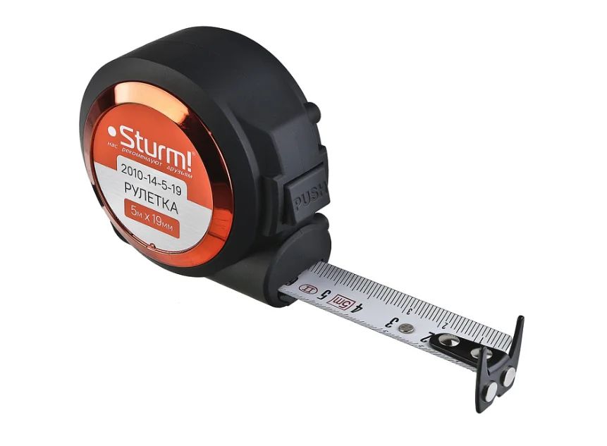 Измерительная лента с двухсторонней шкалой и зацепом.