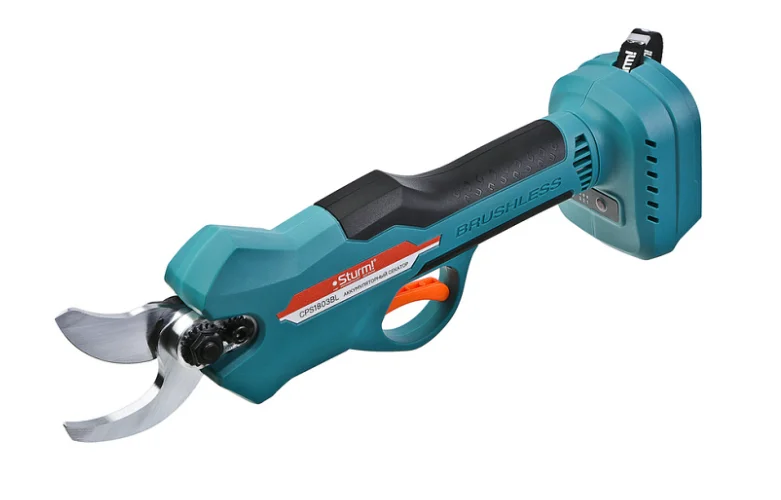 Секатор аккумуляторный незаменимый инструмент для ухода за садовыми кустарниками и деревьями.