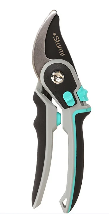 Секатор с регул откры 10/15 мм, верхн. лезвие япон сталь SK5 алюм ручк, покр Sturm 3012-04-23