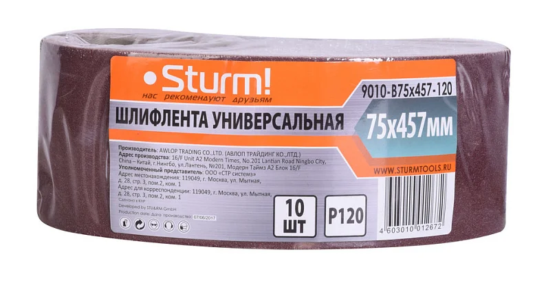 Шлифлента, 75x457мм, Р120, 10 шт, Sturm! 9010-B75x457-120