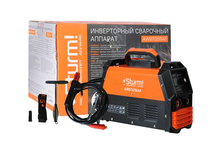Сварочный инвертор Sturm!, 250А, ПВ 60%, 170-250В,HotStart/AntiStick/ArcForce,сенсор AW97I250AF