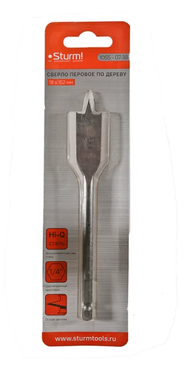 Сверло перовое по дереву, 18мм, шестигранный хвостовик, Sturm! 1055-07-18