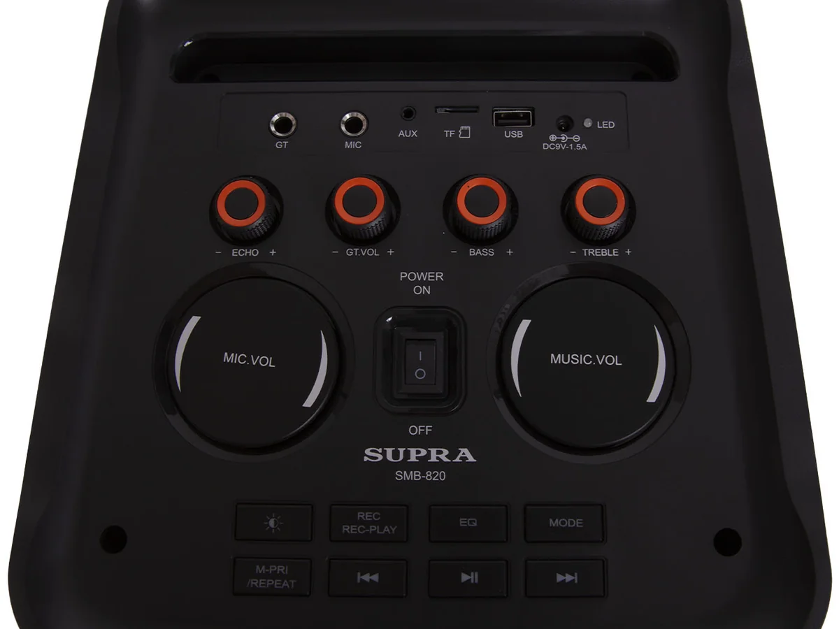 Минисистема SUPRA SMB-820 чёрного цвета — это большая напольная колонка, которая представляет собой мощную музыкальную систему.