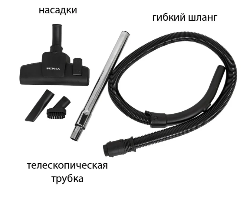 пылесос, щетка пол/ковер, щелевая насадка, насадка для мягкой мебели, гарантийный талон, инструкция на русском языке