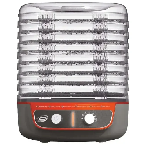 Позволяет сушить фрукты, овощи, грибы, мясо, травы, а также делать йогурты и десерты. Сохраняет все витамины и полезные микроэлементы. Мощность 600 Вт, 1 поддон для пастилы + 8 прозрачных поддонов (2 из которых со съемной сеткой), что дает возможность устанавливать емкости для приготовления йогурта ( до 9 стеклянных баночек). 2 рабочих объема. Диаметр прозрачных поддонов 33 см, высота до 40 мм. Сушилка Волга-9 сделана из первичного пищевого пластика, не шумит, имеет терморегулятор. Есть возможность выбора нужной температуры сушки от 35 до 70 градусов. Имеется встроенный вентилятор. 2 года гарантии.Рецепты внутри инструкции. Цветная коробка. Размер прибора: 330х350х355мм (ШхГхВ). Размер прибора в упаковке: 355х335х360мм (ШхГхВ). Вес нетто: 3,37 кг. Вес брутто: 4 кг. Размер транс. упак. 700х360х370 мм. Класс защиты от поражения электрическим током II.
