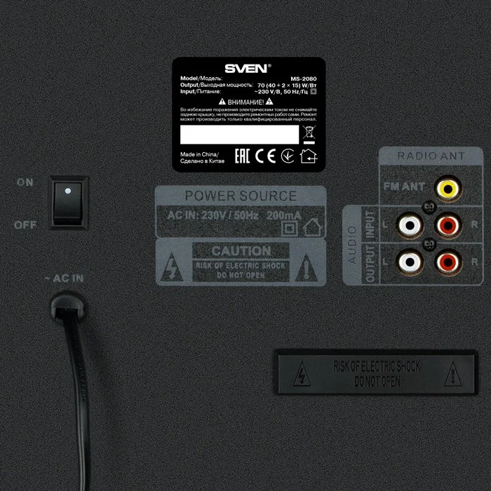 | Размеры изделия, мм | сабвуфер: 250 × 340 × 290 сателлиты: 105 × 200 × 100 |
