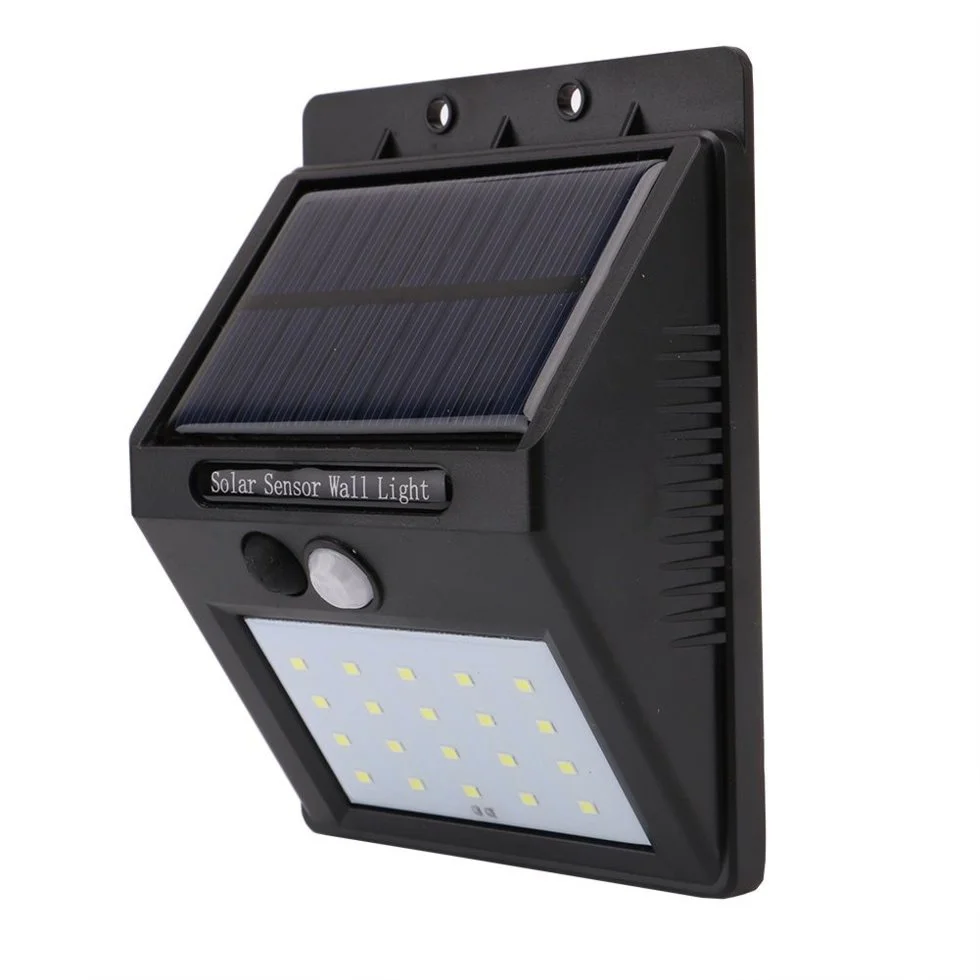Плоды технического прогресса - Светодиодный Фонарь 20 Led solar powered с датчиком движения, оснащенные солнечной панелью и питающиеся исключительно от энергии солнца. Всё что нужно от пользователя это закрепить светильник там, где необходимо, по средствам двустороннего скотча или закрепив через шурупы, больше никаких проводов и сложных электрических схем. Этот светодиодный светильник на солнечной батареи может быть установлен на стене Вашего дома. Солнечная панель поглощает солнечный свет и превращает ее в электрическую энергию в аккумуляторной батарее. Когда наступит вечер светодиодный садовый светильник автоматически включит свет при движении в радиусе обхвате светильника. Этот светодиодный уличный фонарь даст вам хороший вид и безопасность вашего двора в ночное время. Он широко используется для освещения во дворе, на балконе, стена, улица, сад, площадке, и т.д. Когда темно или обнаруживает кого-то приближается к двери, датчик автоматически включит светодиодные фонари. Автоматический датчик активируется, когда обнаруживает кто приближается.