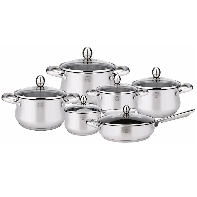 - Набор посуды, 12 предметов (4 кастрюли, сотейник, сковорода, 6 крышек);