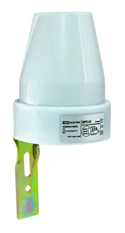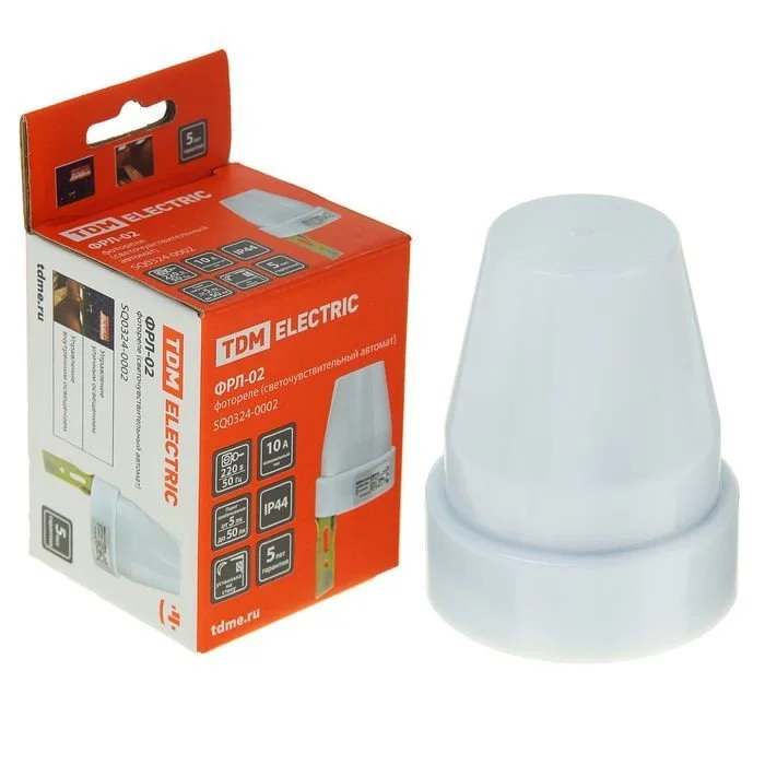 Фотореле TDM ФРЛ-02 SQ0324-0002 - электротехническое устройство для автоматического включения/отключения освещения. Коммутация зависит от общего уровня освещенности в однофазных электрических сетях переменного тока. Прибор широко используется для установки внутри и снаружи помещений для управления освещением на стоянках, остановках общественного транспорта, в парках, на территориях коттеджей, в офисных центрах, в зданиях производственного назначения, в подъездах и т.д.