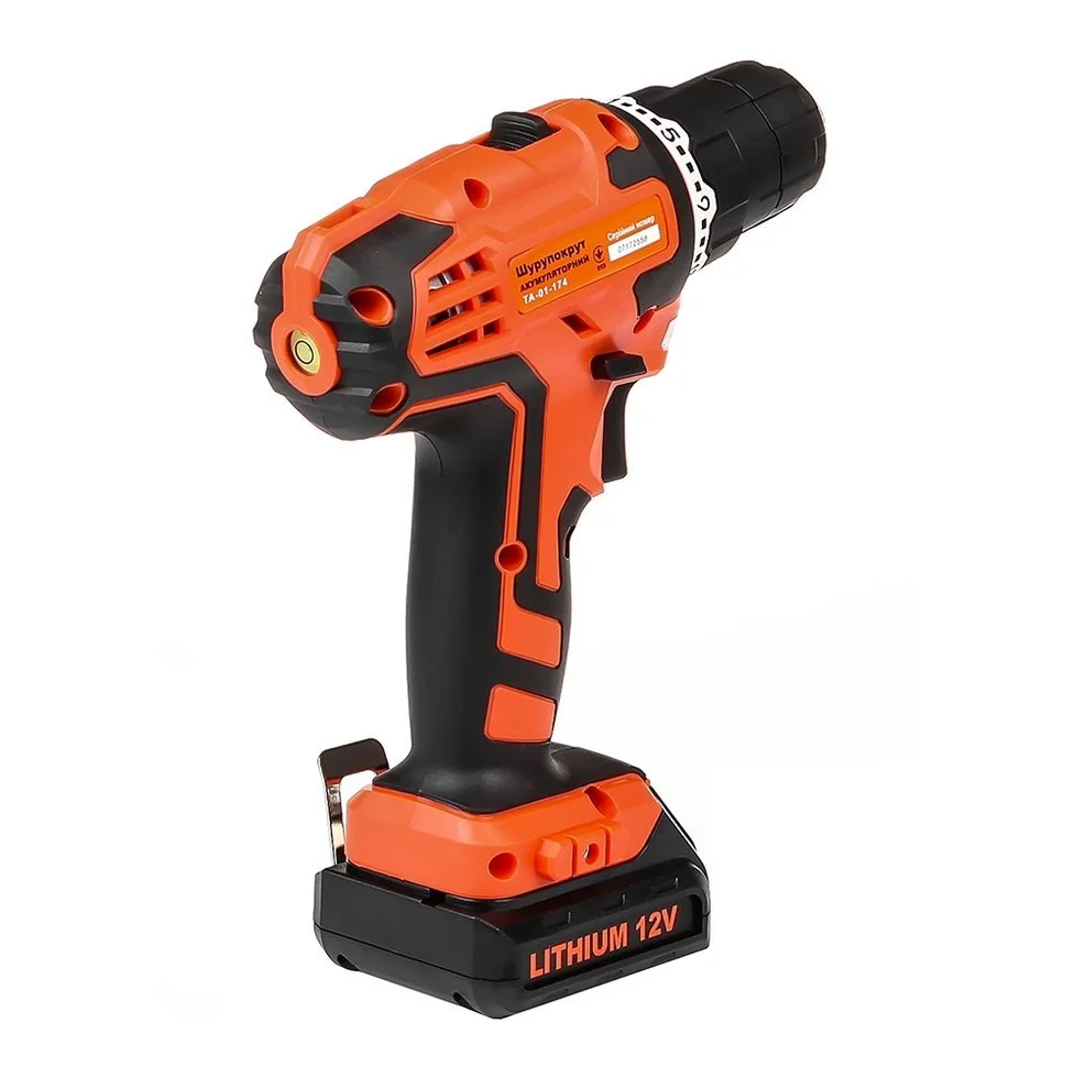 Аккумуляторный шуруповерт ТехАС ТА-01-174 имеет компактный корпус и небольшой вес, что позволяет работать даже одной рукой, а также вести работы в труднодоступных местах. Эргономичный дизайн, обрезиненные элементы корпуса, высокооборотистый мотор - это только некоторые преимущества данной модели. Основной хват имеет анатомические линии, что уменьшает нагрузку при длительном удержании. Резиновая накладка на нем гасит вибрации, а также не дает ему выскользнуть. Принудительное охлаждение оберегает обмотки от выхода из строя. Редуктор оборудован двумя механическими скоростями, он также устойчив к перегрузкам.