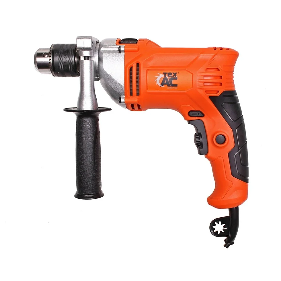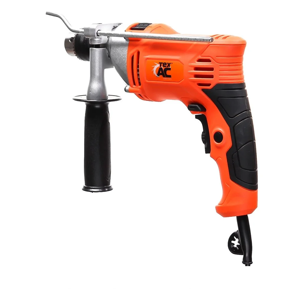 Электрическая дрель Тех.АС ТА-01-208 комплектуется выполненным из металла редукторным корпусом. Электромотор мощностью 1050Вт развивает скорость вращения патрона до 3000 об/мин. В электрической дрели установлен кулачковый патрон диаметром от 1,5 до 13мм. На рукоятке размещены резиновые накладки, предотвращающие скольжение инструмента во время работ.