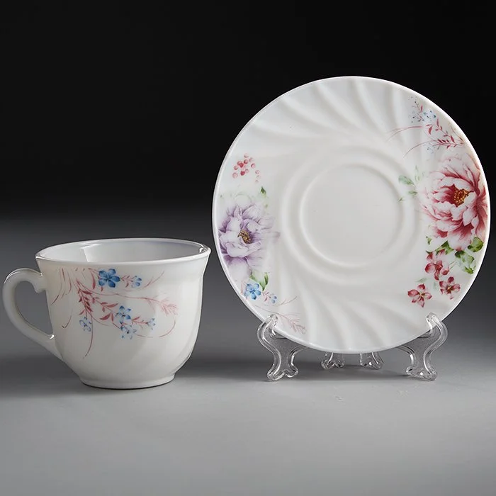 - Кружка с блюдцем из стеклокерамики с декоративным рисунком