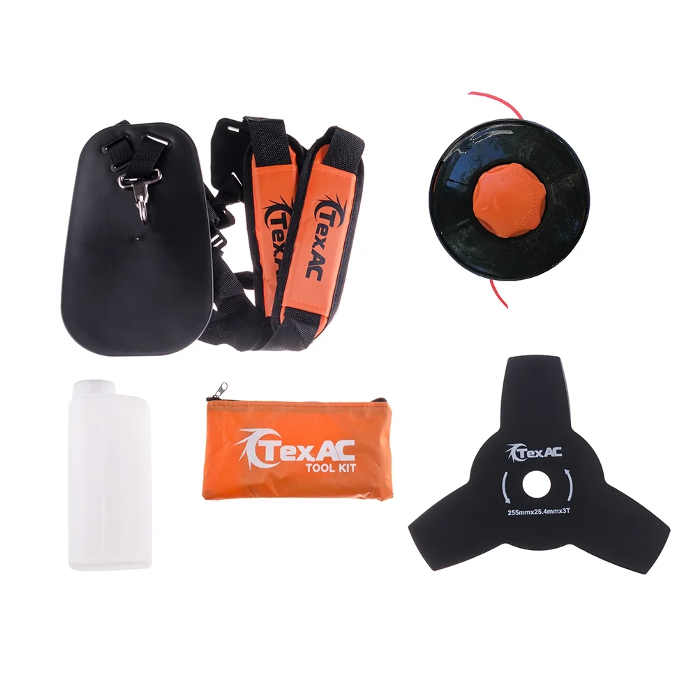 Мотокоса Тех.АС ТА-03-153 поставляется с набором необходимых аксессуаров для выполнения работ по скашиванию травы. В комплект к мотокосе входит плечевой ремень, емкость для приготовления топливной смеси, набор ключей для сборки мотокосы. Так же в комплекте есть трехлепестковый нож, полуавтоматическая шпулька с леской, дополнительная рукоятка, состоящая из двух частей, и сумка для хранения. Для защиты оператора в комплект входит защитный кожух с ножом для подрезания лески.