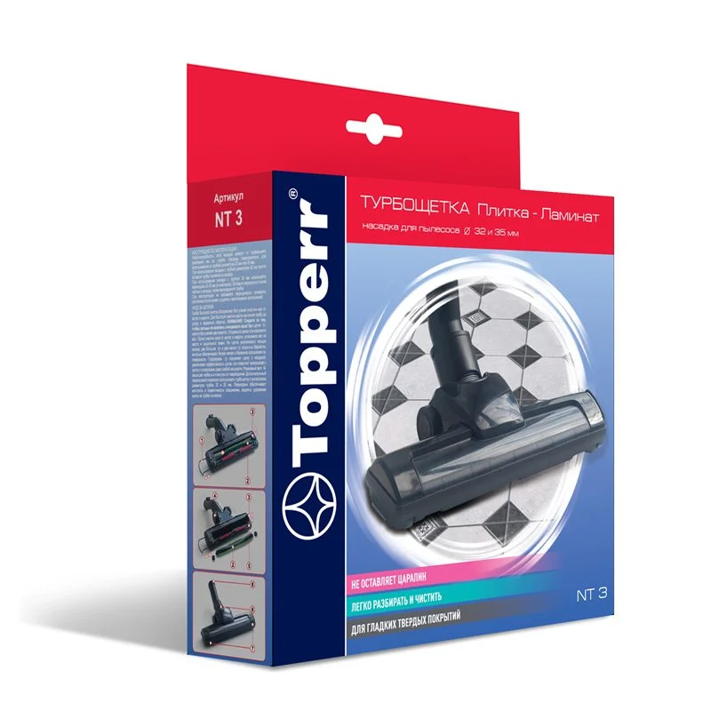 Турбощетка эффективно удаляет волосы и шерсть, мельчайшую пыль, прилипшую к полу из-за статического электричества. Благодаря соединению цанги с насадкой через гофрорукав увеличивается эффективность щетки на 10%. Это позволяет использовать ее с пылесосами слабой мощности.