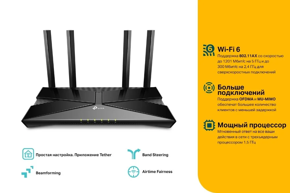- Поддержка Wi-Fi 6 — новейшего стандарта беспроводной связи, который повышает скорость и пропускную способность сети, а также снижает нагрузку на неё.