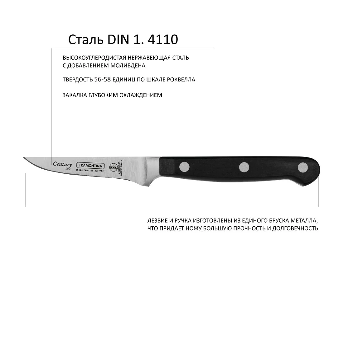Лезвие ножа Century из высокоуглеродистой нержавеющей стали марки DIN 1.4110 с добавлением молибдена