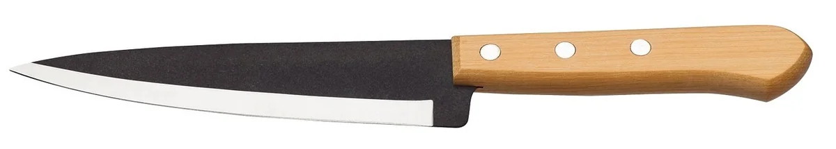 Поварской или «Шеф-нож» нож удобен для всего - нарезать зелень, порезать морковку, капусту, картошку, лук, чеснок и много другое. Очень удобно резать таким ножом, а потом подхватить нарезанное на широкое лезвие, что бы отправить в кастрюлю или сковороду. Удобно повернуть нож и подавить орехи, чеснок, ягоды без использования дополнительных кухонных атрибутов. Такой нож чаще всего используют люди, которые уже не первый раз на кухне. Классический шеф-нож может иметь размеры от 15 до 25 см.