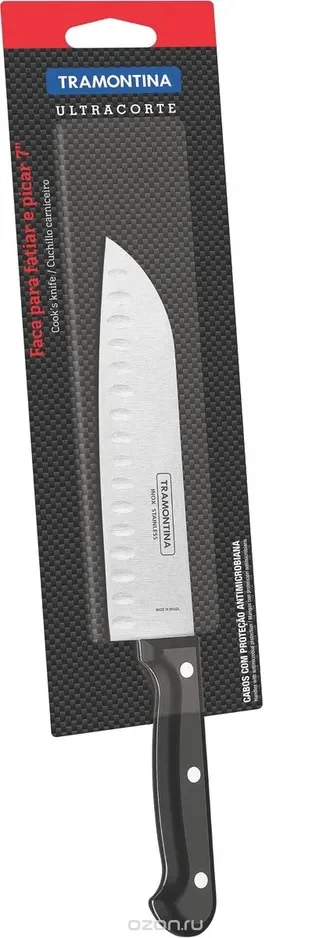 Ножи, колоды, точилки, ножницы » TRAMONTINA Нож Ultracorte 23868/107 сантоку 17,5см. Нож Tramontina Ultracorte 23868/107 сантоку 17,5см. Производитель: TramontinaТип: сантокуНаличие: На пятницуБонусы: 24 ₽ Код товара: 80467 Цена: 1219 ₽ В корзину Описание Серия: Ultracorte Размеры в упаковке: 38x8x1,7 мм. Вес: 142 гр. Длина лезвия: 17,5 см. Тип стали: AISI 420 Поделитесь ссылкой: