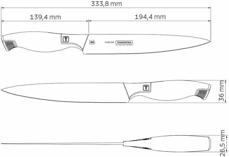 Технические характеристики универсального ножа TRAMONTINA Sublime 20 см 24065/108-TR