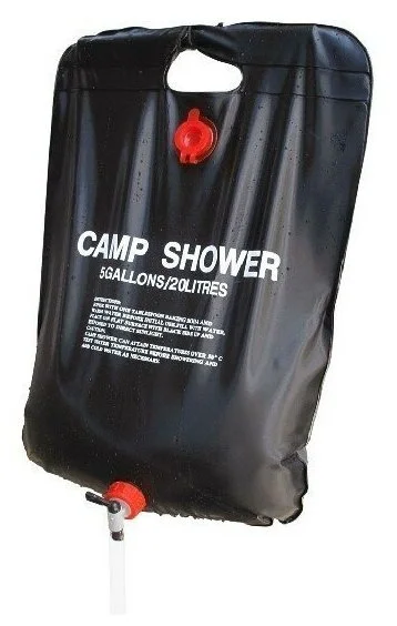 Описание: переносной душ для создания комфортных условий пребывания на природе. Ёмкость заполняется водой и нагревается солнечными лучами. За счёт тёмного цвета корпуса происходит эффективное поглощение тепловой энергии солнца, и уже через пару часов вода в ёмкости прогревается до комфортной температуры.