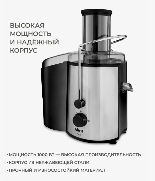 Соковыжималка Ufesa LC5750 Delux — это центробежная модель, предназначенная для приготовления сока из овощей и фруктов. Она оснащена двумя скоростями и импульсным режимом, что позволяет адаптировать процесс под разные типы продуктов.