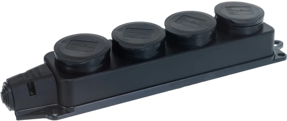 Колодка "UNIVersal" 4-х местная однофазная с заглушками с/з каучук 16А 250В IP44 (еврослот)