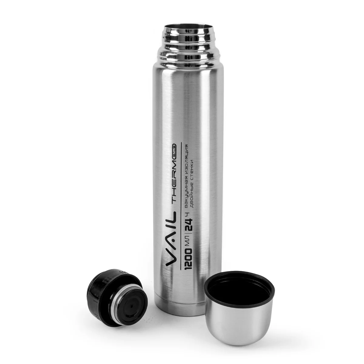 Двойная вакуумная теплоизоляция стенок способствует сохранению температуры горячих и холодных напитков до 24 часов.