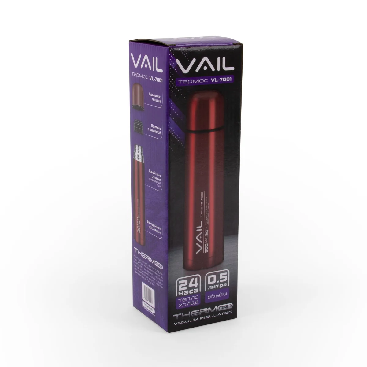 | ДВОЙНЫЕ СТЕНКИ Двойная вакуумная теплоизоляция стенок способствует сохранению температуры горячих и холодных напитков до 24 часов. |