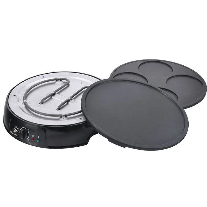 - Две съемные жарочные поверхности с антипригарным покрытием: для блинов и для оладьев
