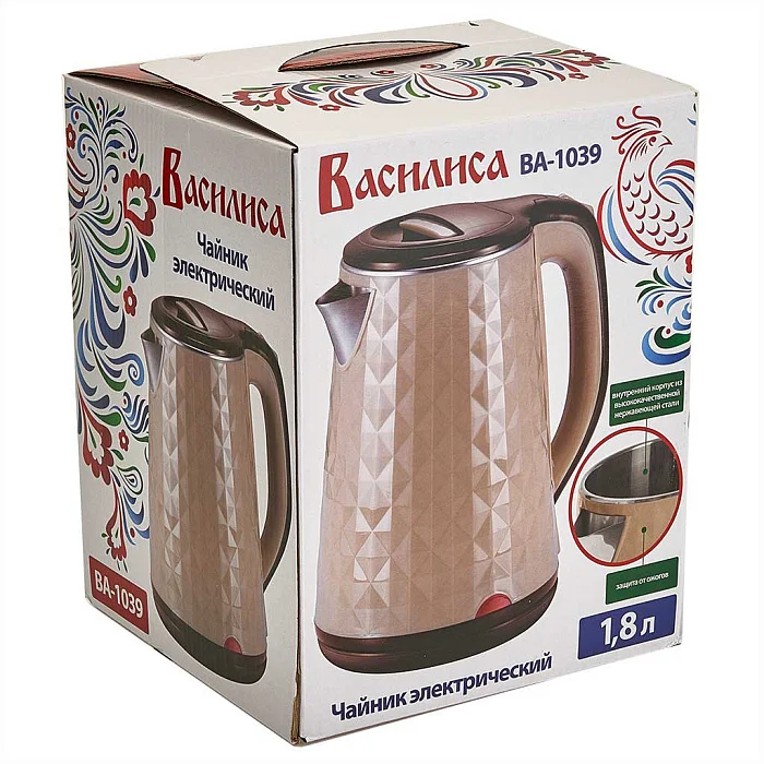 Чайник электрический 1500 Вт, 1,8 л ВАСИЛИСА ВА-1039, двойной корпус, бежевый