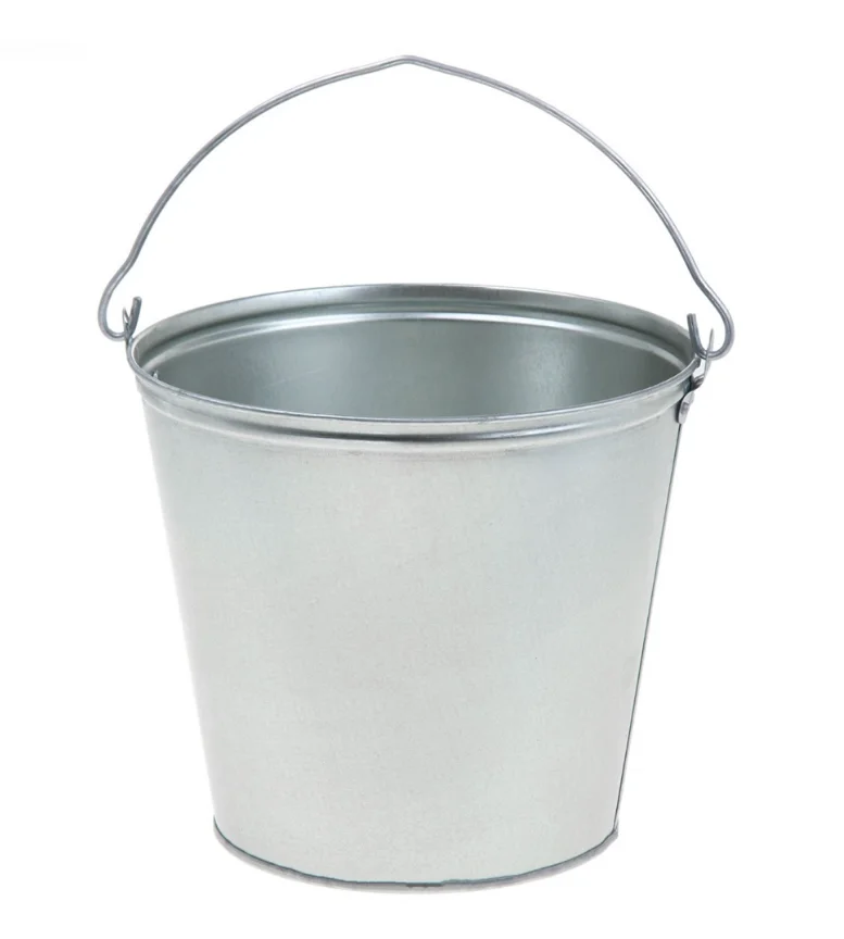 Ведро оснащено металлической ручкой для удобной переноски и подвешивания